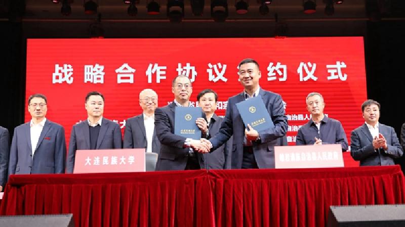 11月23日,辽宁省民族和宗教委与大连民族大学,大连民族大学与8个民族自治县政府签订战略合作协议。国家民委教育司一级巡视员李学锋,辽宁省委统战部副部长兼省民族和宗教事务委员会党组书记、主任张智明,辽宁省民族和宗教事务委员会一级巡视员赵瑞,大连民族大学党委书记赵铸,党委副书记、校长丁克毅,辽宁省8个民族自治县人民政府主要领导出席签约仪式。
