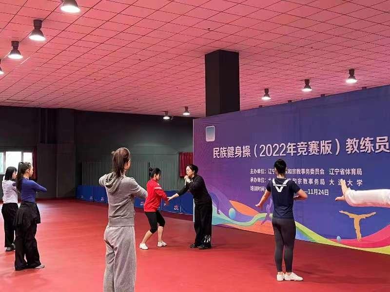 11月21日至23日,由省民族和宗教委、省体育局主办,大连市民族和宗教局、大连大学承办的辽宁省民族健身操(2022版)教练员培训班在大连大学举办,旨在培养全省民族健身操教练员队伍,推广普及民族健身操项目, 推动全民健身和全民健康深度融合,备战第十二届全国少数民族传统体育运动会,夯实第十一届全省少数民族传统体育运动会民族健身操比赛基础。来自全省10个市的25名教练员参加了培训。