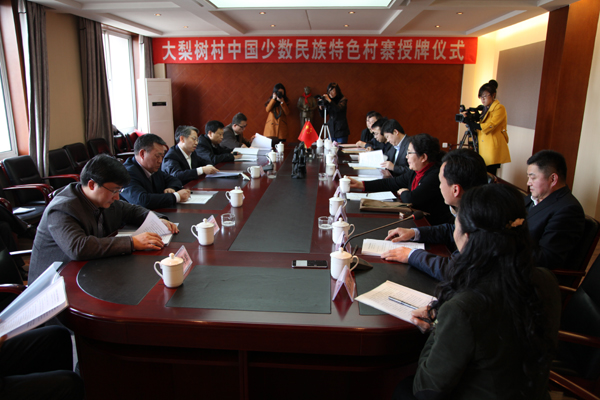 在大梨树满族村调研时,甄杰主任为该村颁发了中国少数民族特色村寨牌匾,他指出,大梨树村要认真学习优秀共产党员毛丰美的典型事迹,学习他的实干精神,通过做好做强大梨树满族特色村寨这个知名品牌,切实保护和传承满族特色文化,深化民族团结进步创建工作,尽心办好惠及当地各族群众的各项实事,不断促进民族团结进步事业繁荣发展。
