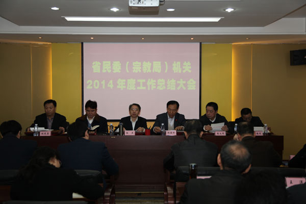 2月15日,省民委(宗教局)召开机关2014年度工作总结大会,总结工作,表彰先进,部署2015年任务。机关全体干部,直属事业单位领导班子成员参加会议。省民委(宗教局)主任(局长)甄杰讲话,副主任(副局长)赵佐贤主持会议。