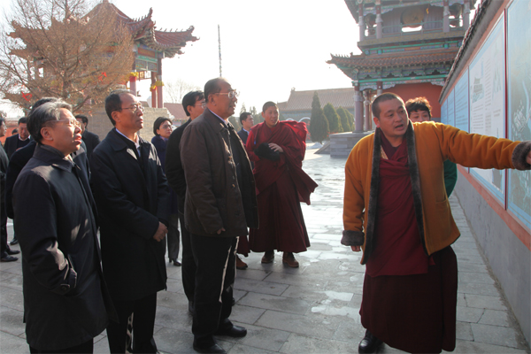 12月10日,省政府副省长冮瑞到阜新市专题调研民族宗教工作,先后实地考察瑞应寺、伊利乳业、阜蒙县蒙古族实验中学、三沟酒业、辽宁省蒙医院、普安寺。省民委(宗教局)主任(局长)甄杰、阜新市委书记张铁民、阜新市市长杨忠林、省发改委副主任路通、省旅游局副局长吴兴坤、省政府办公厅副主任李国伟、阜新市副市长李志成等参加调研。